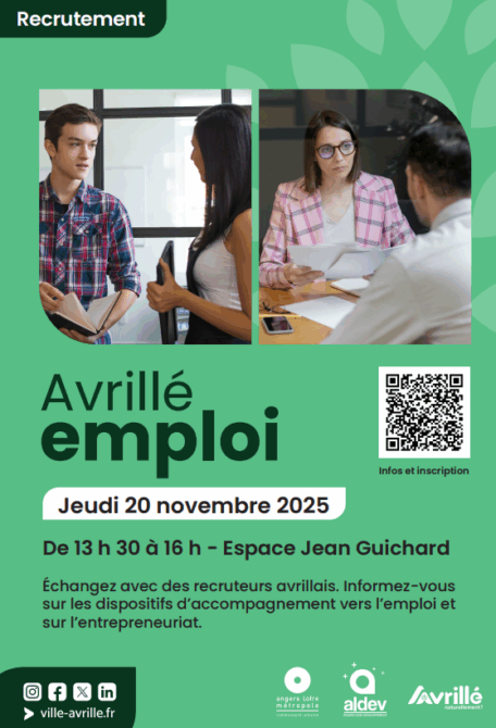 La Ville d’Avrillé, en partenariat avec Aldev, l’agence de développement économique d’Angers Loire Métropole, facilite la rencontre entre les entreprises avrillaises qui recrutent et les candidats en recherche d’emploi.