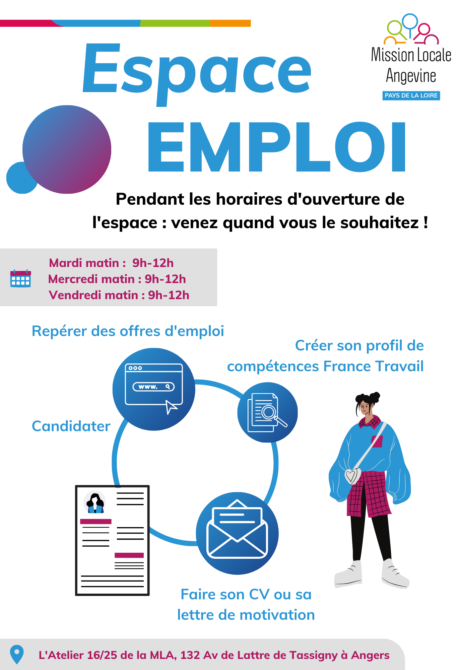 La Mission Locale Angevine te propose de te rendre à l’Espace EMPLOI cette semaine le :